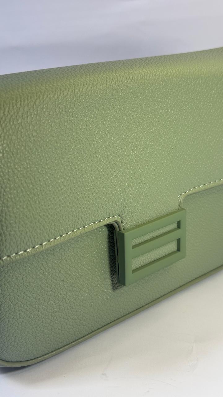 Add a pop of color to your outfit with our stunning sage green handbag, crafted from high-quality leather with a pebbled texture