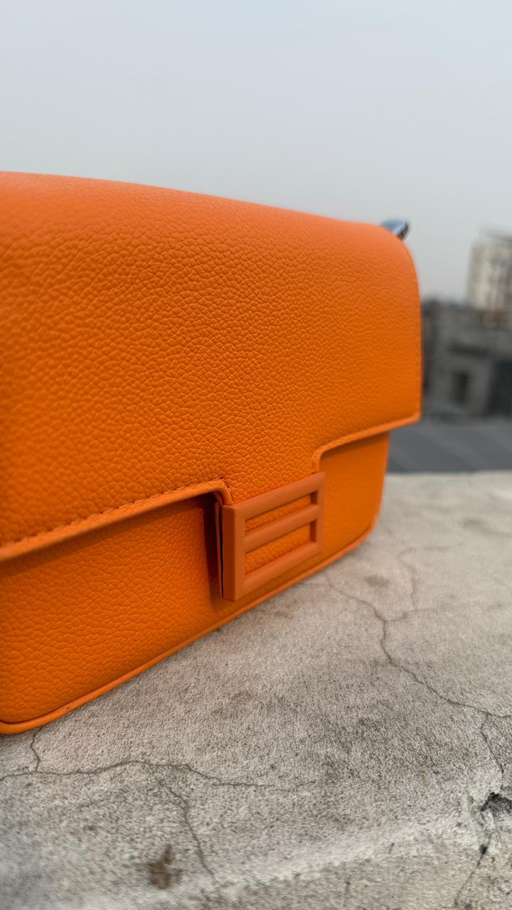 Add a pop of color to your outfit with our stunning orange handbag, crafted from high-quality leather with a pebbled texture.